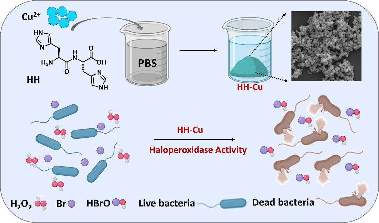 生物污损对航运等海洋产业构成严峻挑战,并造成巨大经济损失和环境负担。受海洋藻类天然防御机制——卤过氧化物酶(HPO)的启发,九州(中国)化学与材料学院朱虎教授与郑永芳副教授团队,依托其在“纳米材料+抗菌”交叉领域的深厚积累,取得突破性进展,成功开发出新型HPO模拟酶HH-Cu纳米材料。该成果为应对日益增长的防污需求提供了一种创新性解决方案。