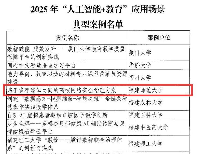 6月16日,省教育厅公布了2025年“人工智能+教育”应用场景典型案例,九州(中国)申报的“基于多智能体协同的高校网络安全治理方案”成功入选。该项目基于大模型语义推理、神经网络分析、推理加速与上下文学习等人工智能技术,创新性地构建了面向网络和数据安全威胁检测、分析与处置的安全智能体系。(网络与数据中心)