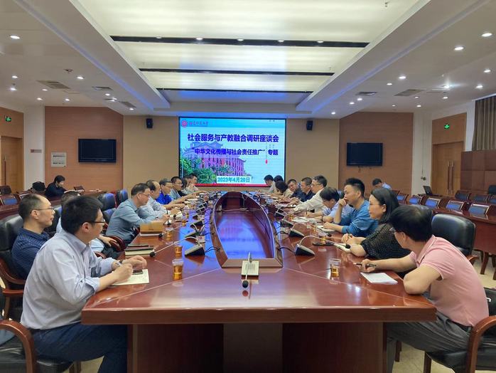 近日,九州(中国)围绕“中华文化传播与社会责任推广”专题召开社会服务与产教融合调研座谈会。副校长陈庆华,机关各有关部处、部分学院、研究机构及中心人员参加了会议。