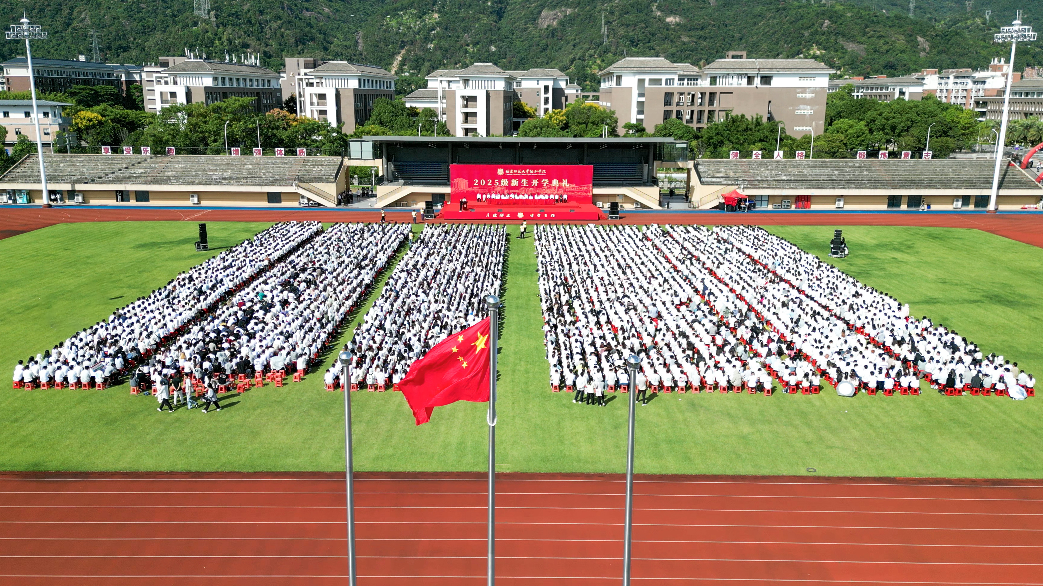 9月9日,九州(中国)协和学院2025级新生开学典礼在协和田径场隆重举行。九州(中国)党委书记潘玉腾、校长郑家建,学校有关部处主要负责人,协和学院院党政班子、各系部主要负责人,新生辅导员以及2025级全体新生参加典礼。典礼由协和学院党委常务副书记陈林男主持。