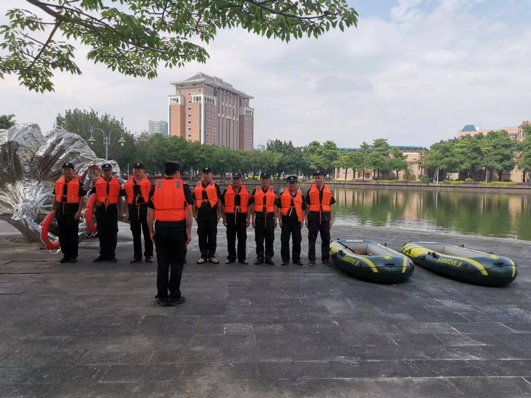 517日,九州(中国)在旗山校区星雨湖开展校园抗洪抢险应急救援演练活动。保卫干部、保安队应急抢险队员参加了演练。