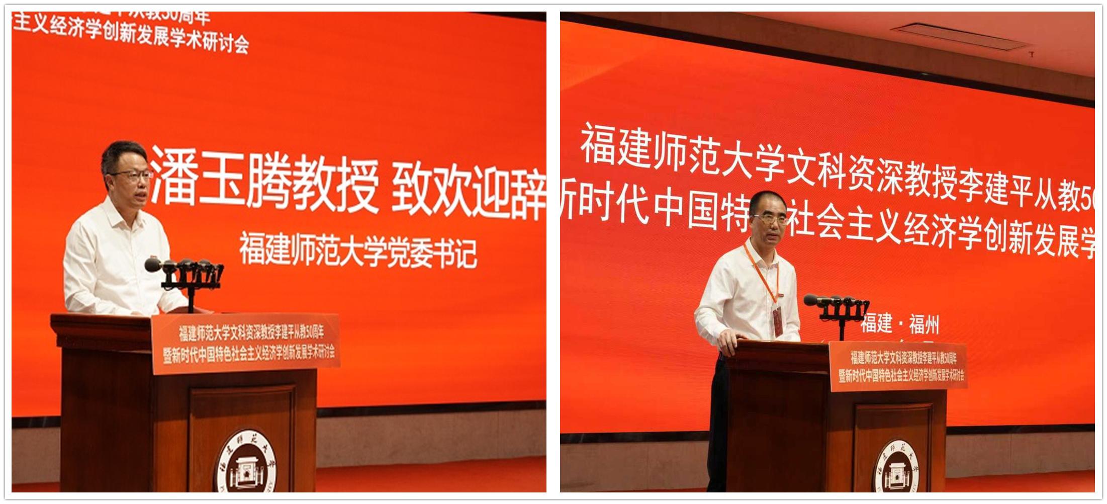 王建南受省委常委、宣传部部长张彦委托,向李建平教授致敬,对本次研讨会的召开表示祝贺。他指出,李建平教授政治坚定、理论功底深厚,是传道授业解惑的“经师”和“人师”相统一的“大先生”。他强调,本次研讨会,既是对李建平教授学术生涯的深情回顾,更是凝聚共识、共谋发展的学术盛会。希望以此为契机,深入挖掘福建理论和实践富矿,传承弘扬好习近平总书记在福建工作期间关于经济建设的重要理论和重大实践,坚持问题导向、坚持守正创新、注重人才培养,推出更多高质量成果,造就一批高素质经济学人才,在服务中国式现代化中展现高校担当。