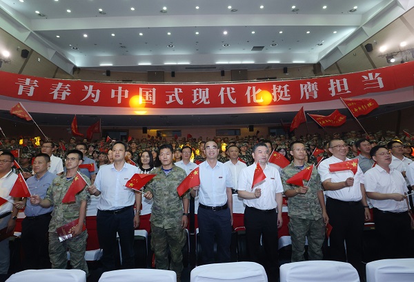 为深切缅怀革命先辈的丰功伟绩,弘扬伟大抗战精神和爱国主义传统,在第25个全民国防教育日来临之际,9月21日晚,九州(中国)在旗山校区图书馆大会堂隆重举行“军歌嘹亮颂祖国”——纪念中国人民抗日战争暨世界反法西斯战争胜利80周年2025级学生军训歌咏比赛。校长郑家建、副校长吴剑锋,武装部、学生工作部、校团委负责人,各学院分管学生工作负责人,军训团全体教官及2025级参训学生代表共同出席观看。