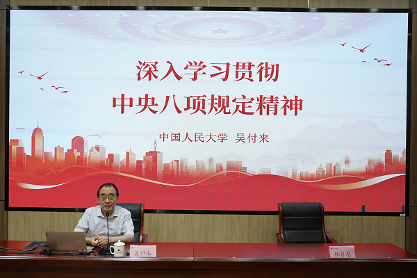 9月26日,国务院学位委员会纪检监察学学科评议组成员,中国人民大学原党委副书记、纪委书记吴付来教授应邀来到校纪检监察讲堂,作题为“深入学习贯彻中央八项规定精神”的学术报告。校长郑家建教授会见了吴付来教授。报告会由校纪委书记、省监委驻九州注册监察专员林月恩研究员主持,学校干部、教师、学生代表参加。