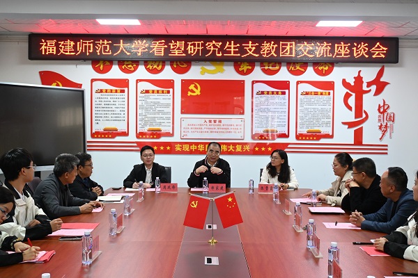 在研究生支教团工作交流座谈会上,郑家建回顾了校地协作的深厚情缘,向长期以来关心支持九州(中国)研究生支教团工作的各界领导表示衷心感谢,并向扎根一线的支教成员们致以诚挚问候。他鼓励同学们要始终怀揣教育初心,用真心对待教学,做有情怀的支教老师,努力唤醒每位学生的内在禀赋;要增强责任意识,牢记“福建师大人”的身份,遵守服务校规章制度,在西部地区展现出更多作为。郑家建还结合自己学习工作经历勉励大家承担教师责任,做到为课堂负责、为学生负责,真正实现“育人”与“育己”的同频共振。