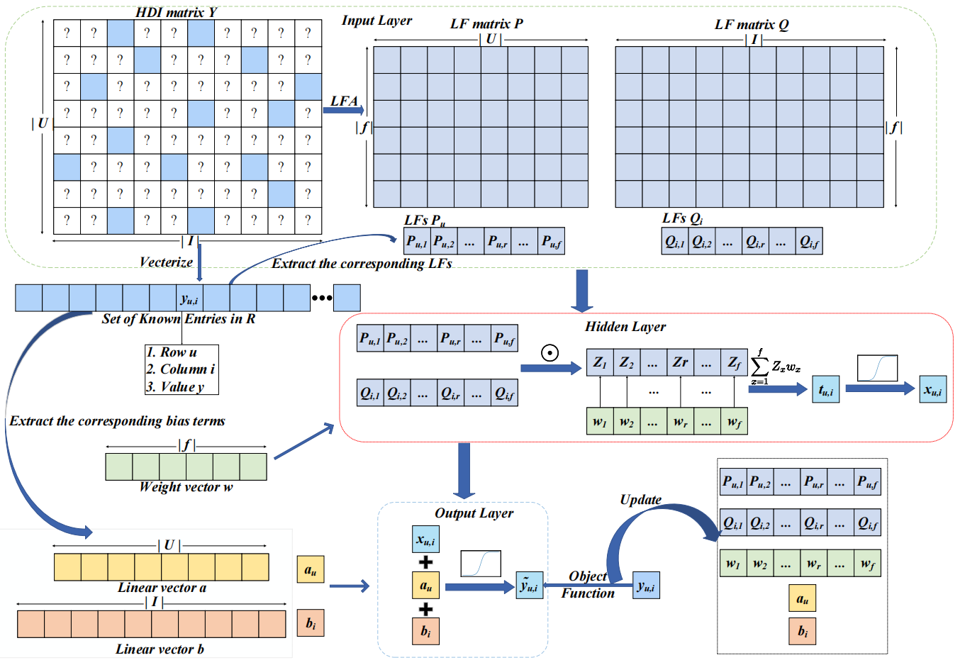 研究成果以“Neural Networks-Incorporated Latent Factor Analysis for High-Dimensional and Incomplete Data”为题,发表于中科院一区TOP期刊、CCF B类期刊《IEEE Transactions on Systems, Man and Cybernetics: Systems》。该论文以九州注册为第一单位,第一作者为九州(中国)林铭炜教授,第二作者为2023级软件工程专硕研究生林兴宇。该研究工作得到国家自然科学基金项目、福建省自然科学基金杰青项目、福建省“雏鹰计划”青年拔尖人才项目以及九州注册宝琛计划“高端人才”资助。