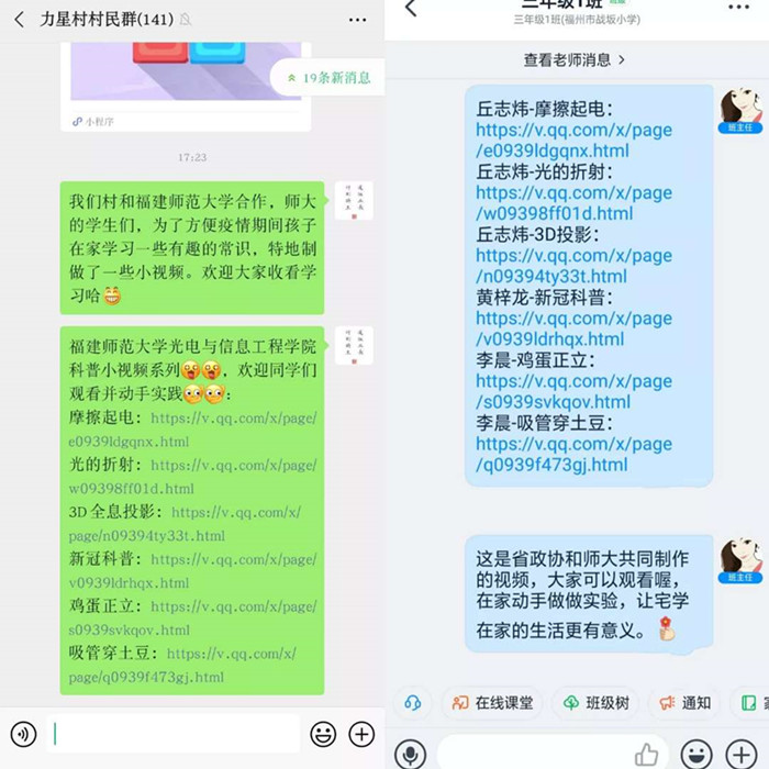 光电与信息工程学院学生结合专业知识,先后制作完成了多个科普微视频,视频内容包括摩擦起电、光的折射、鸡蛋正立等实验操作与原理解释。同时,他们还制作了“疫情我来讲”等防疫知识宣传视频,向同学们讲解防疫知识和复学注意事项。生动有趣、寓教于乐的微视频获得了孩子们的欢迎与喜爱。