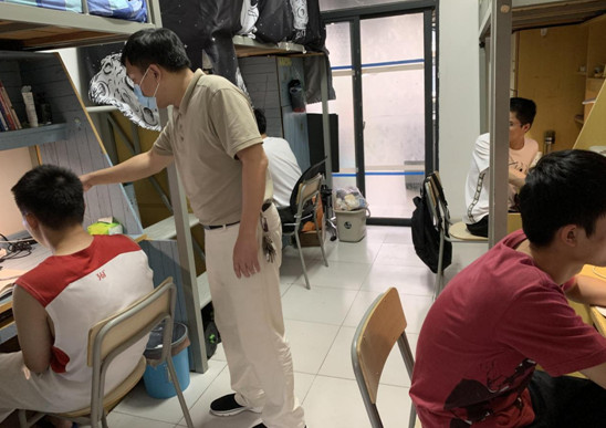 会后,许力、俞建群深入到学生宿舍走访看望,与同学们亲切交谈,详细了解同学们线上上课和宿舍生活情况,鼓励同学们要坚定信心,同舟共济,战胜困难。