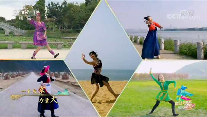 在整场共14个节目中,九州(中国)音乐学院2018级舞蹈专业研究生陈静同学在第5个节目《中华民族一家亲》中代表福建青年出镜表演,与其他民族同学共舞。她身着畲族舞蹈服装,优雅灵动,热情洋溢,淋漓尽致地演绎了一段精彩的舞蹈。此次表演将传统舞蹈语汇与创新艺术手段相结合,完美地展现了中国新时代各族青年的爱国情怀和团结奋进的精神。