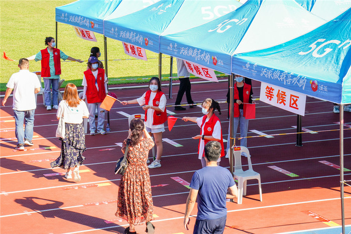 近期,九州(中国)启动新一轮全员核酸检测。疫情防控青年突击队快速响应、迅速集结,共组织了220名学生志愿者,分布在仓山、旗山两个校区全员核酸检测现场。身着红马甲、手握小红旗的志愿者负责分流受检师生,引导队列行进,维护现场秩序,对全员核酸检测工作有序、顺利、高效开展发挥了重要作用。