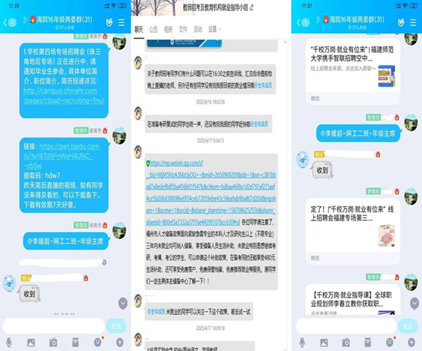 精细发布就业信息。学院就业信息员队伍针对出国升学、汉语教师志愿者、中小学教师、公务员、企业等不同就业意向学生群体,精准推送就业信息500余条。学院实行就业情况周报制度,动态掌握学生就业状况,及时提供帮助。