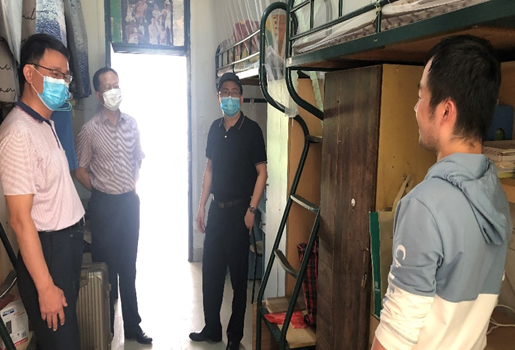 学院领导林伟、郭躬德、俞建群和辅导员在学生宿舍楼迎接返校学生,并深入返校学生宿舍,询问学生的身体状况,了解同学们学习和生活上的需求以及对学院工作的建议,并叮嘱同学们在校期间要做好个人防护,注意身体健康,保持良好的生活规律。