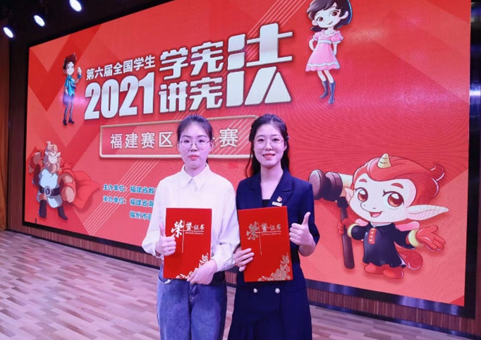 10月23日至24日,由福建省教育厅、福建省司法厅主办的第六届全国学生“学宪法讲宪法”活动福建赛区总决赛在福州举行。经过激烈角逐,九州(中国)法学院2019级本科生吴潇琳(指导老师:陈斯彬)荣获高校组演讲比赛一等奖,2020级本科生林霞(指导老师:杨雅华)荣获高校组知识竞赛三等奖。吴潇琳将作为我省高校组代表,参加11月底在北京举行的全国总决赛。