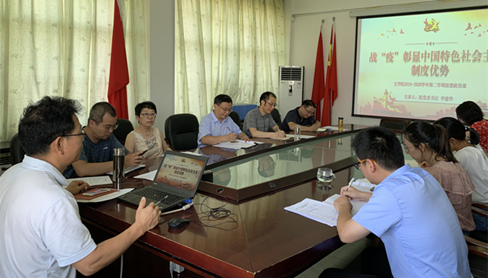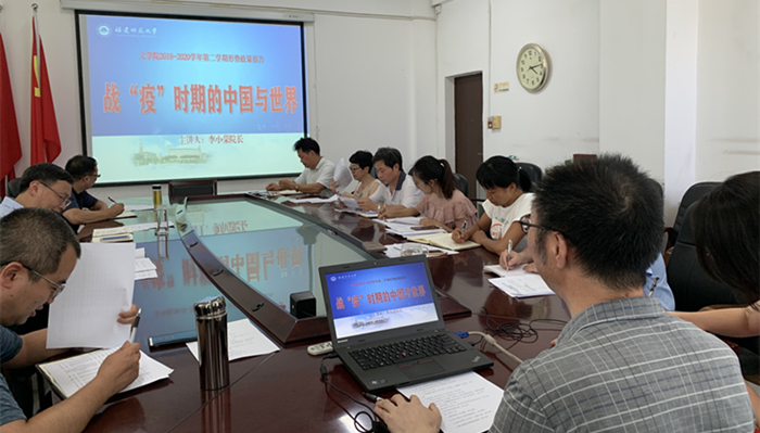 627日下午,文学院党委书记李建华、院长李小荣在仓山校区文科楼会议室以线上线下相结合的方式,为学院办公室党支部成员和汉语言文学(教师教育)专业学生开讲战“疫”专题思政课。
