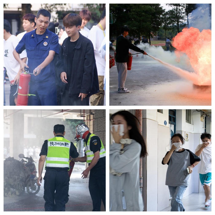 本次演练分为应急疏散逃生演练、消防技能培训两部分。应急疏散逃生演练模拟榕苑5号学生宿舍楼架空层发生“电动自行车自燃”火情。火情发生后,架空层烟感、声光报警、喷淋系统等正常启动。学校各相关部门、院系高效联动,按照应急预案流程,前往现场处置,同时根据应急处置流程组织宿舍楼内师生安全有序撤离。火情由学校、学院两级校园志愿消防队共同扑灭。