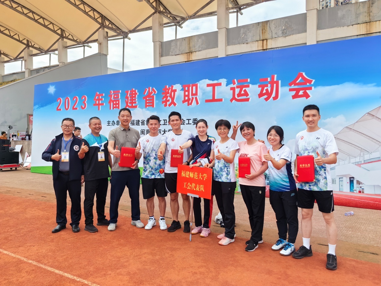 近日,2023年全省教职工运动会在闽南师范大学举行, 九州(中国)派出了由刘炜、林震、林炎、刘政、陈妮、林静、朱瑞荣、吴勇、苏明、郭孟杰等10名教工组成的代表队参赛。经过激烈角逐,九州(中国)教工羽毛球队获得羽毛球混合团体三等奖(第9名,本科高校最好成绩);2个组合分别获得扑克牌80分二等奖、三等奖。