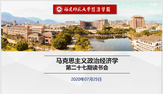 725日晚上,经济学院线上开展学习分享《为了一个共同的事业——恩格斯对<资本论>的巨大贡献》系列活动之一暨第二十七期马克思主义政治经济学读书会活动。学院党委副书记颜隆忠、政治经济学教研组教师、全体辅导员、马克思主义学院博士生杨臻煌、青马班学员以及读书会全体成员等共60余名师生参加活动。
