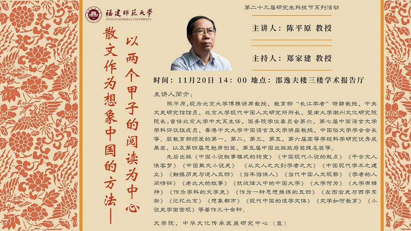 专家简介:陈平原,现为北京大学博雅讲席教授,教育部“长江学者”特聘教授,中央文史研究馆馆员、北京大学现代中国人文研究所所长、暨南大学潮州文化研究院院长;曾任北京大学中文系主任、国务院学位委员会第六、第七届中国语言文学学科评议组成员、香港中文大学中国语言及文学讲座教授、中国俗文学学会会长等。获教育部颁发的第一、第二、第三、第五、第六届高等学校科学研究优秀成果奖,以及第四届思勉原创奖、第五届中国出版政府奖提名奖等。