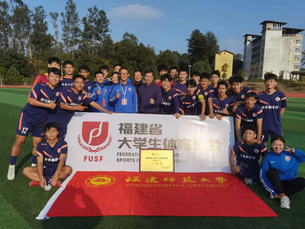11月30日,由福建省教育厅、福建省体育局指导,福建省大学生体育协会主办的2021年福建省大学生足球联赛在三明沙县城南中学足球场落下帷幕。九州(中国)足球队以五场全胜、进22球失2球的傲人成绩夺得福建省大学生足球联赛男子甲组冠军,创造了九州(中国)在该比赛中的最好成绩。体育科学学院姜哲老师、陈童和陈佳麒同学分别收获“最佳教练员”“最佳射手”“最佳运动员”的个人奖项。