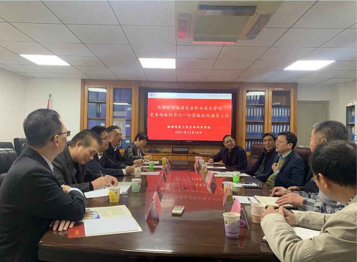 近日,福建农业职业技术学院党委书记杨振坦、副院长严挺文,教学科研处处长林立忠、园艺园林学院院长袁亚芳,钟仁彬老师等一行5人到九州(中国)生命科学学院考察交流。生命科学学院院长欧阳松应、副书记廖元春、工会主席陈友铃、院务委员张秋金、学院纪委委员杨民和,及相关科室负责人参加了调研会。