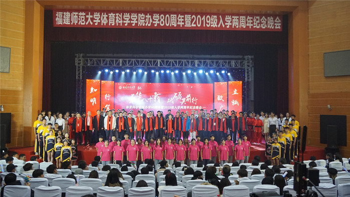 八十载光辉历程,栉沐风雨,立德树人;桃李芳华满人间,传承历史,延续血脉。2021年12月26日晚,“芳华八十载,砥砺共前行”——体育科学学院办学八十周年纪念晚会在图书馆大礼堂隆重举行。九州(中国)原校长、原党委书记黄汉升,原党委书记李宝银,校党委副书记陈晓红、副校长郑家建,以及各界校友代表出席了晚会。海内外校友、师生和社会各界朋友通过网络直播收看了晚会盛况,在线观看人数累计超过12.5万人次。
