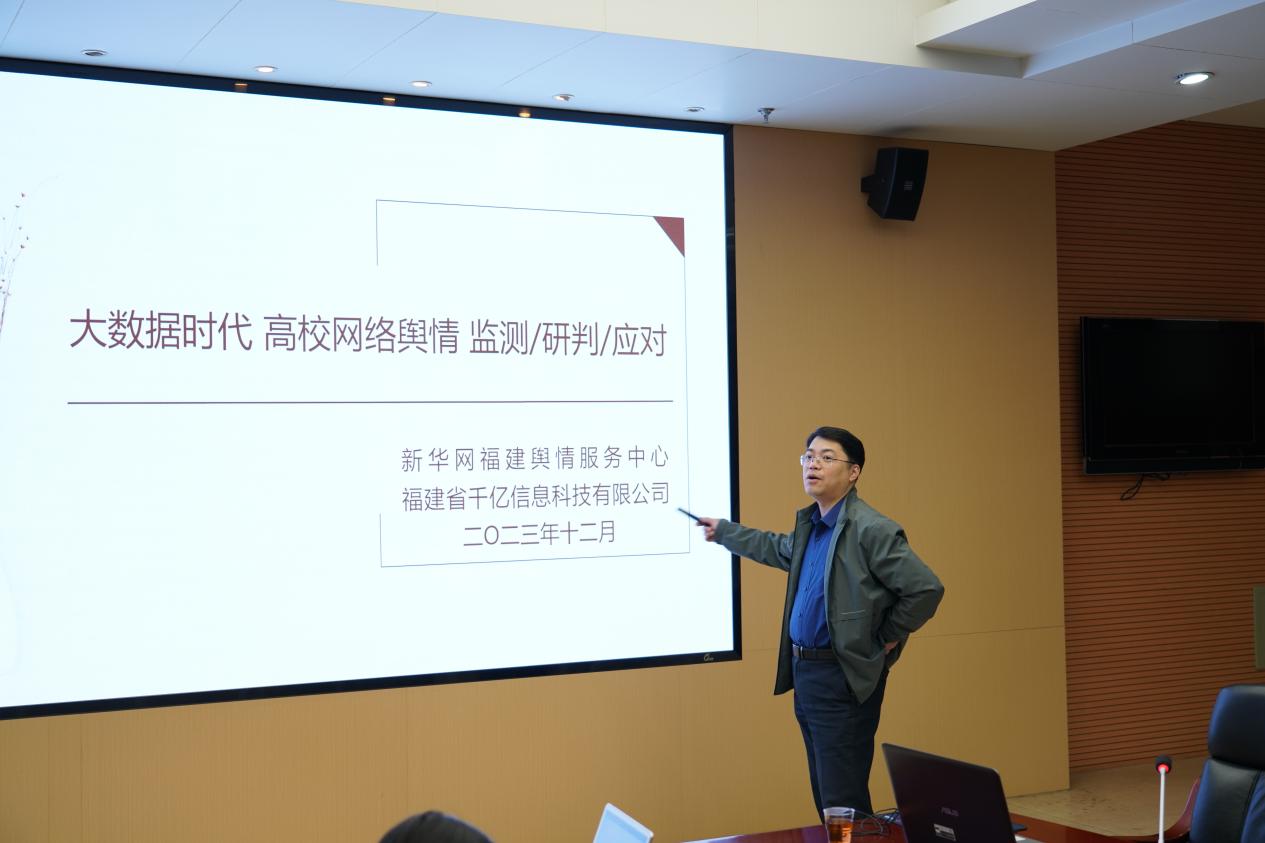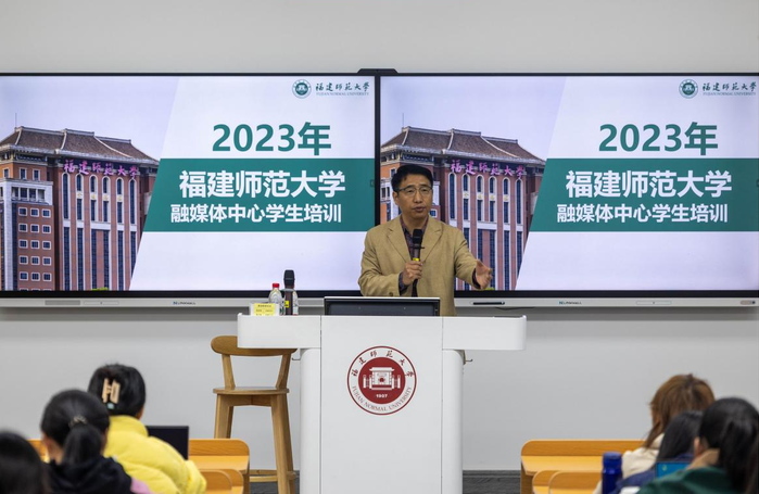 培训期间,福建日报主任记者储白珊、林辉,国际在线福建频道记者李唯一,福建千亿信息科技有限公司总经理方敏强,分别以《我们怎样讲故事——浅谈新闻选题与写作》《新闻摄影宣传报道实用技巧》《业界需要怎样的媒体人》《大数据时代高校网络舆情监测、研判、应对》为题,围绕新闻选题与采写、新闻摄影技巧、媒体素养、舆情应对等方面为师生开设专题讲座;组织师生赴闽侯县融媒体中心开展现场调研,进一步深化校地合作共建。