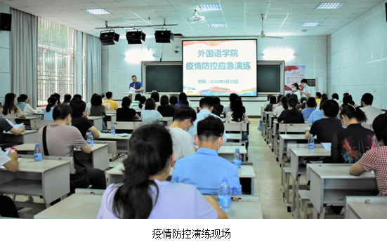 925日下午,外国语学院在外语楼110教室及南安楼宿舍楼开展了秋季开学疫情防控应急演练。学院领导、教师代表、各年级辅导员、行政后勤部门代表以及学生代表参加了此次观摩和演练。