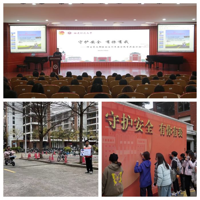 活动自34日启动,为期5天,分为“与你共督、与你共学、与你共商、与你共行”四个部分。期间,师生在兰1-4宿舍楼开展电动车骑行督导,增强师生党员交通安全意识;邀请福州市公安局交警支队上街(高新区)大队郭毅警官作电动自行车安全教育宣讲,音乐学院学生党员带来交通安全主题曲,党员们纷纷在“守护安全、有你有我”宣言墙上签名承诺维护校园交通安全。