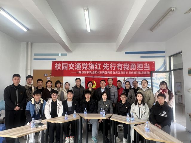 38日,人事处党支部和计算机与网络空间安全学院2022级网络空间安全专业研究生党支部联合开展“校园交通党旗红 先行有我勇担当”主题共建活动。