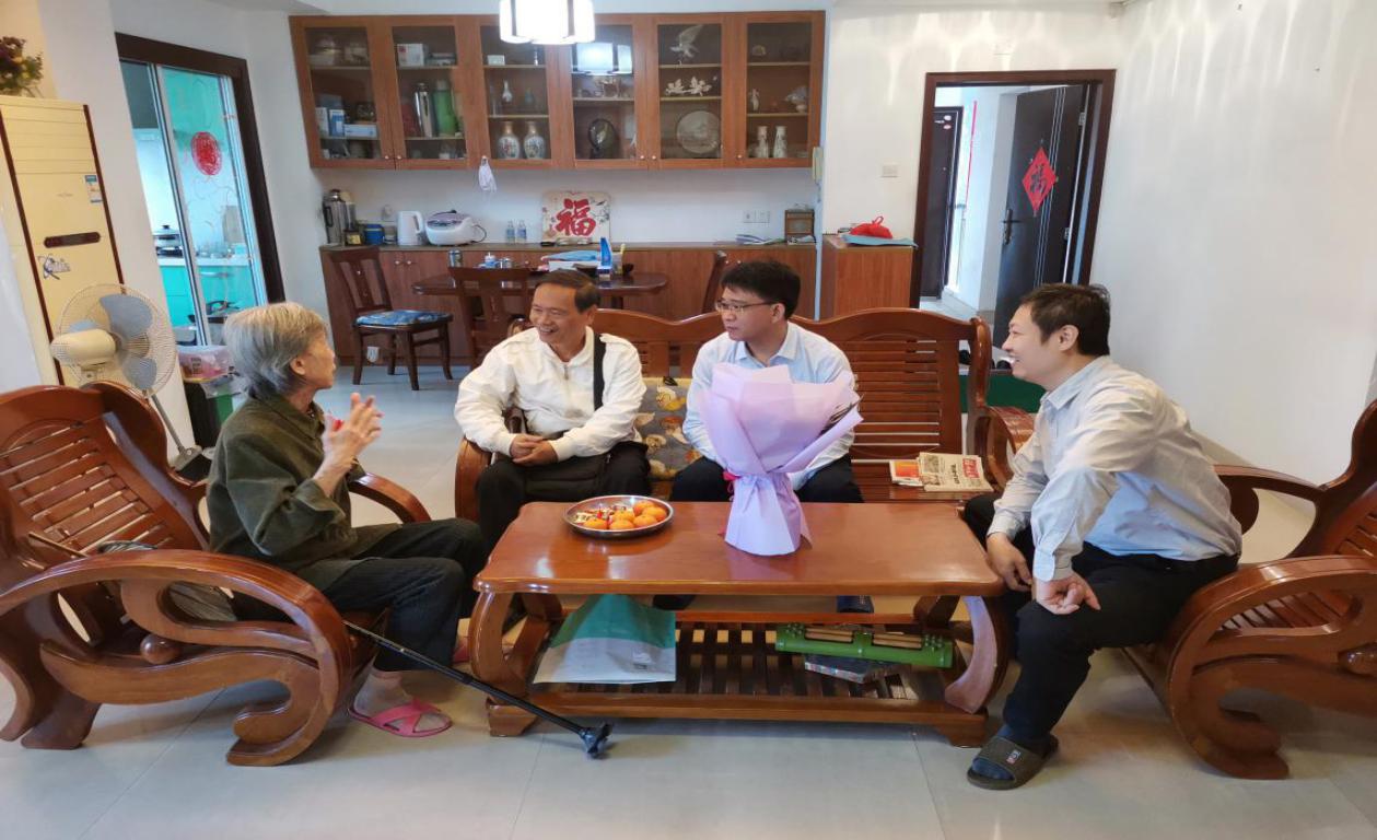 1023日上午,院领导陈振祯、方千华和院退休教师支部书记陈俊钦开展走访慰问老寿星、钻石婚、金婚等退休教师活动,活动中,院领导向退休教师送上鲜花和慰问金,与他们亲切交谈,详细询问他们的生活起居、健康情况,认真听取他们的意见建议,并叮嘱他们要保重身体、安享晚年。