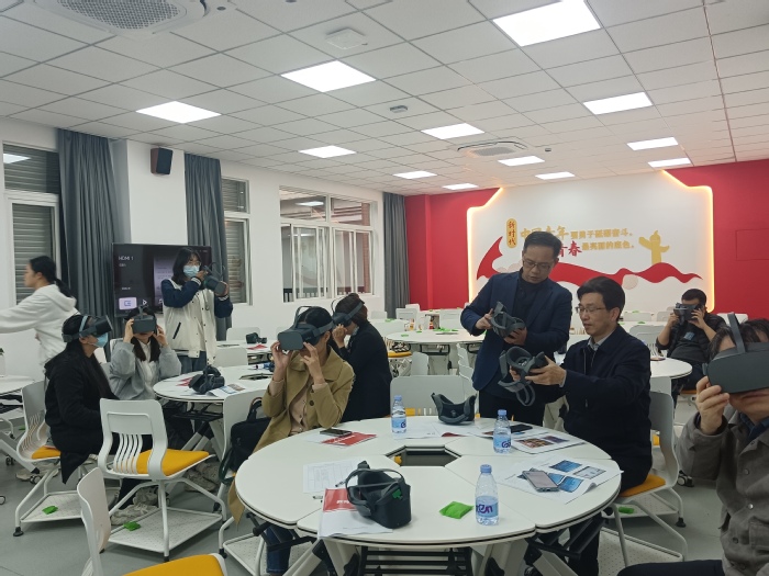 培训技术人员首先展示了VR思政平台教学资源设置流程和后台管理的具体操作方法,对照《教师使用手册》逐一为学院教师现场演示了设备操作的具体流程。培训期间,学院师生现场体验了VR虚拟穿戴设备、桌面虚拟实训终端、沉浸式智慧课堂等新技术在思政课教学中的具体应用。教师就平台演示优势、操作关键要点以及如何充分利用平台资源等问题和技术人员进行了交流。此外,实验管理员对培训过程中师生的实时体验感受和设备优化使用反馈情况等做了详细记录。
