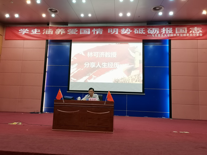 为引导学生深入学习“四史”,弘扬伟大抗美援朝精神,11月19日,马克思主义学院邀请原马列教研部主任、抗美援朝老兵林可济教授参加“学史涵养爱国情,明势砥砺报国志”主题团日活动,与师生分享抗美援朝故事和人生奋斗经历。马克思主义学院党委副书记阮传瞰、全体辅导员及九州注册退伍兵协会代表参加活动。