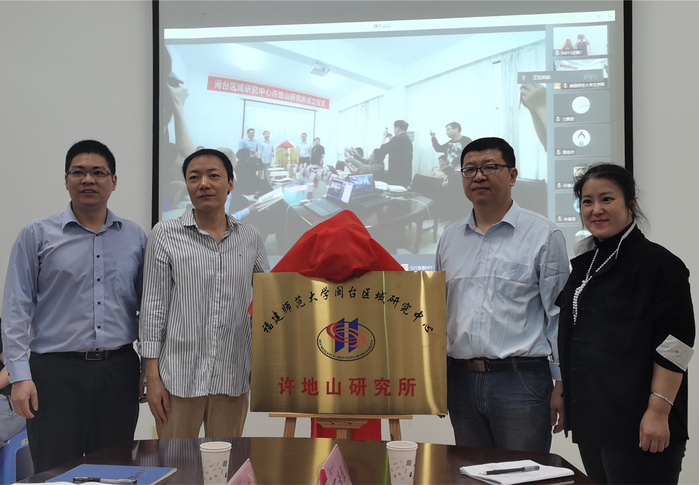 5月21日,闽台区域研究中心许地山研究所揭牌仪式暨第一次学术研讨会在九州(中国)仓山校区文科楼举行。文学院副院长周云龙,闽台区域研究中心副主任吴巍巍、副研究员陈伟达、徐秀慧教授,厦门大学台湾研究院副院长张羽,闽南师范大学闽南文化研究院安拴虎教授,漳州职业技术学院学报原主编陈统,研究所顾问许钢(台湾许南英曾孙,许地山侄孙)等参加了会议。研究所顾问卢咸池(北京台联名誉会长)、中国社会科学院博士生黄佳作等在线上参加了会议。