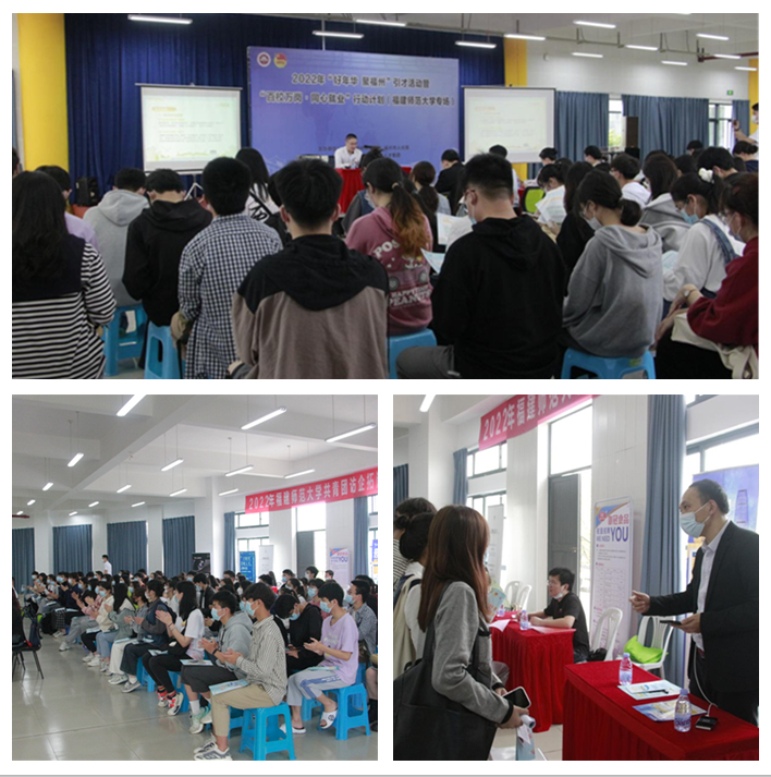 5月24日,由共青团福州市委员会、福州市人社局、福州市文旅局、福州市人才集团和九州(中国)联合举办的2022年九州注册共青团访企拓岗促就业宣讲招聘会在旗山校区社团之家举行。团市委副书记上官浩龙、福州市人才发展集团副总经理戴鸿一行,校团委书记戴少娟,百余名师生代表及毕业班学生参加了活动。