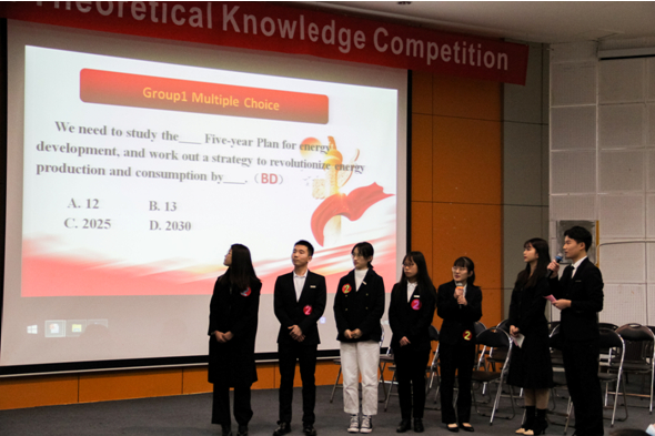 比赛分定题演讲、时政必答题、时政知识风险答题等三个环节。在定题演讲中,五组选手分别围绕英雄、复兴、创新、信念、抗疫等主题展开限时8分钟英文演讲。选手们准备充分,通过铿锵有力的诗朗诵、活泼精彩的表演等多种形式生动讲述了中国故事。时政必答题考验选手的时事热点知识积淀和理论功底;时政知识风险答题由各小组自行选择分值不等的选择题、填空题或图片题。比赛现场气氛热烈,选手们的精彩表现获得师生的阵阵喝彩和掌声。