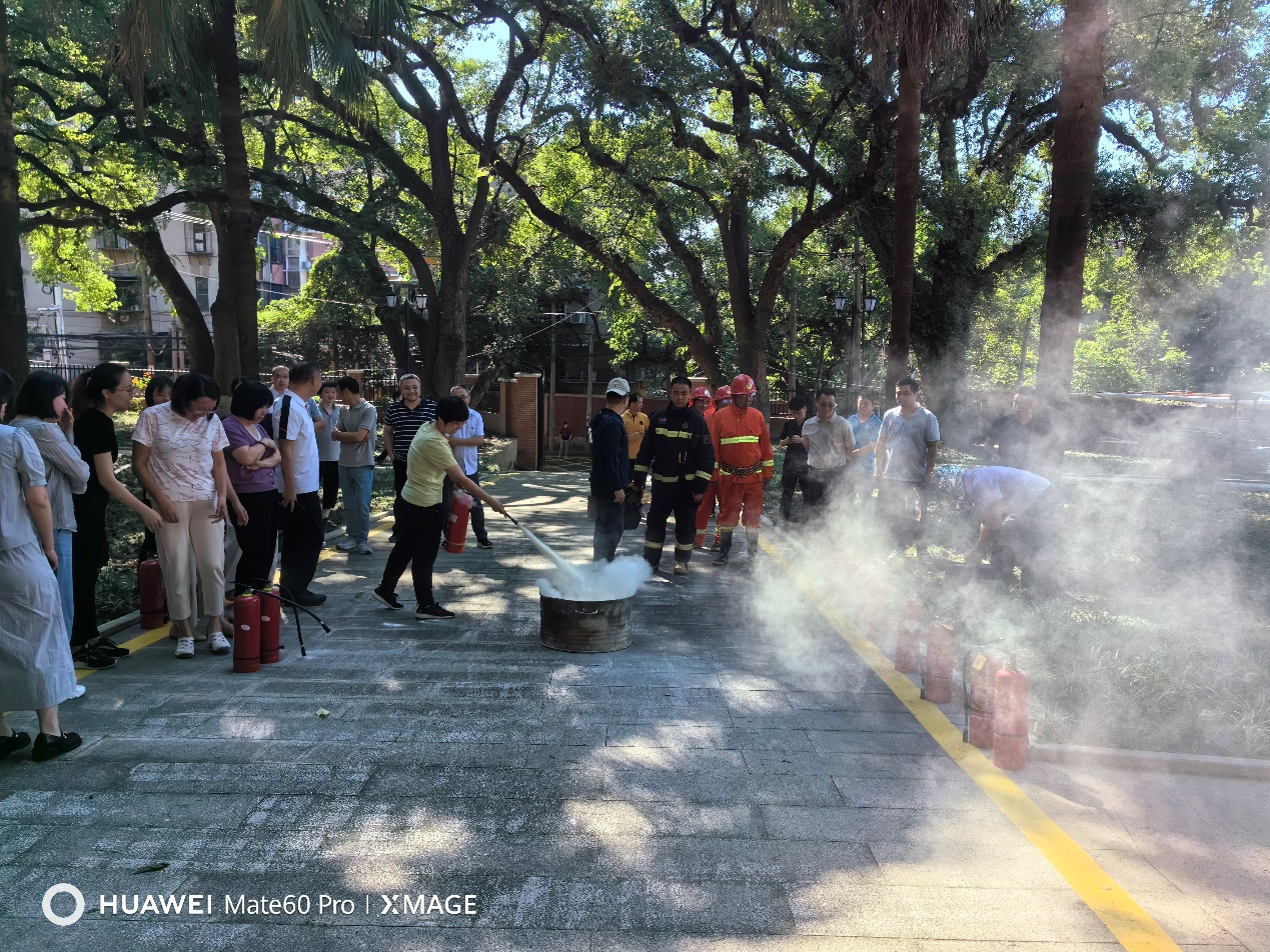 应急演练结束后,消防救援站队员对参与演练的师生员工、志愿消防队队员进行了消防技能培训,对正确使用干粉灭火器、水带连接等进行了详细讲解和现场灭火实操。
